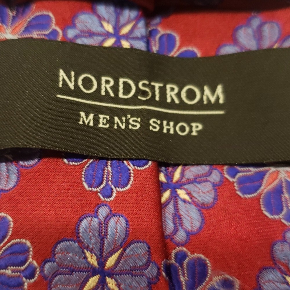 #1456 Nordstrom Men's Tie Red Blue Floral 100% Silk This men's red tie with blue floral design is in very good condition with minimal wear. See photos for condition and measurements. Thanks for stopping by.