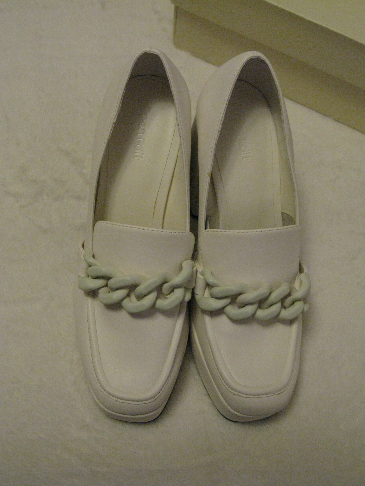 Welcome to my Auction! Up for purchase is the Nordstrom Open Edit Lainey Platform Loafer Pump shoe . Gorgeous Ivory Synthetic smooth leather with matching color chain detail across the foot bridge. New and authentic with box. Size Womens 7.5 Medium Width (D) A tonal curb chain gives a classic look to a statement-making loafer pump amplified by a chunky platform and lofty block heel. • 4 3/4" heel; 1" platform • Synthetic Leather upper/synthetic lining/rubber sole • Imported New with box Please ask all questions before bidding - serious buyers only. I will report non-paying bidders to ebay. Please be considerate and make sure you can complete your sale. Returns are accepted only in cases of items not being as described or wrong item sent. I cannot accept returns of used cosmetics. I am an individual seller - not a department store. Processing returns is time-consuming and costly. Ebay takes a percentage of every sale, so I cannot refund shipping costs. Be sure you like the color, check the size, ask questions etc. to ensure you will be pleased with your purchase. Thank you for visiting and good luck!