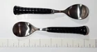 This MCM Noritake Primastone Decision Black 18-8 stainless flatware from Japan is a must-have for any collector or lover of unique flatware. The set features a sleek black color and ribbed handle that adds a touch of sophistication to any dining table. Made of durable stoneware and stainless steel, this vintage set is perfect for both everyday use and special occasions. With hand washing, this set will maintain its beauty for years to come. This flatware is perfect for those who love to mix and match their dinnerware and want a unique set that will impress their guests. Sold by the piece.