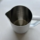 Open box New item! FULL CONTROL AND PRECISION - The Normcore handleless frother pitcher (Patent Pending) has a unique handleless design to improve control and precision when pouring to provide much more flexibility when creating latte art. ROUND SPOUTS - Classic design with wide and curved gently spout, allows for a faster pour and flow rate. Especially well-suited free-pour patterns like solid hearts, simple tulips, rosetta, winged tulips, and rippled hearts. MAKE PERFECT LATTE ART - The accurate spout is wide enough to balance a steam wand and a small part of exposed metal at the bottom of this milk froth cup allows the ability to touch and test the heat of the milk. HEAT-RESISTANT GRIP - Our milk frothing pitcher feels secure and balanced in your hand thanks to the silicone heat-resistant grip. The ability to hold the milk jug any way, without the restriction of a handle. PREMIUM QUALITY - Normcore products are crafted with 1mm thickness of premium stainless steel. Available in a capacity of 15.2 or 20.3 oz, which depends on the size of your drinks.