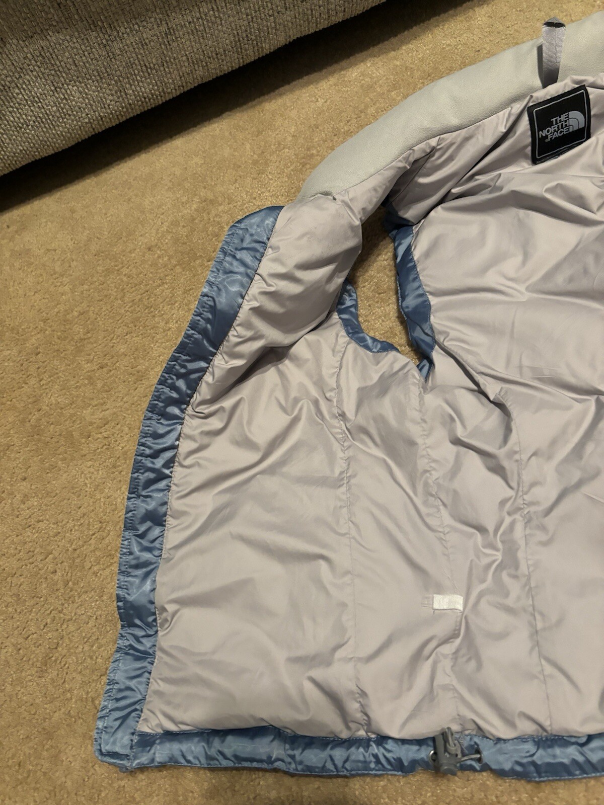 This blue puffy vest from The North Face is perfect for outdoor activities. With a 550 fill power and down insulation, it will keep you warm and cozy. The vest features a polyester outer shell and a solid pattern, making it stylish and durable. It also has a zip closure for easy wear. The vest is a regular fit and is designed for women in size XS. Whether you're hiking, running, or just going for a casual walk, this vest will be a great addition to your wardrobe. It's versatile, comfortable, and will keep you warm in those chilly months.
