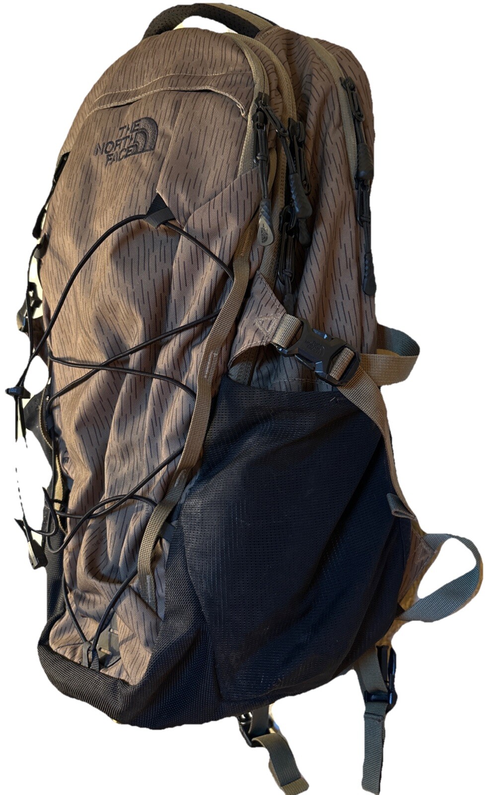 The North Face Borealis Backpack Waist Strap Book Bag Olive Green Laptop Hiking Pre-owned. See photos for condition details. To upcycle, I reuse shipping material as often as possible. Buy more from my store and save on shipping.