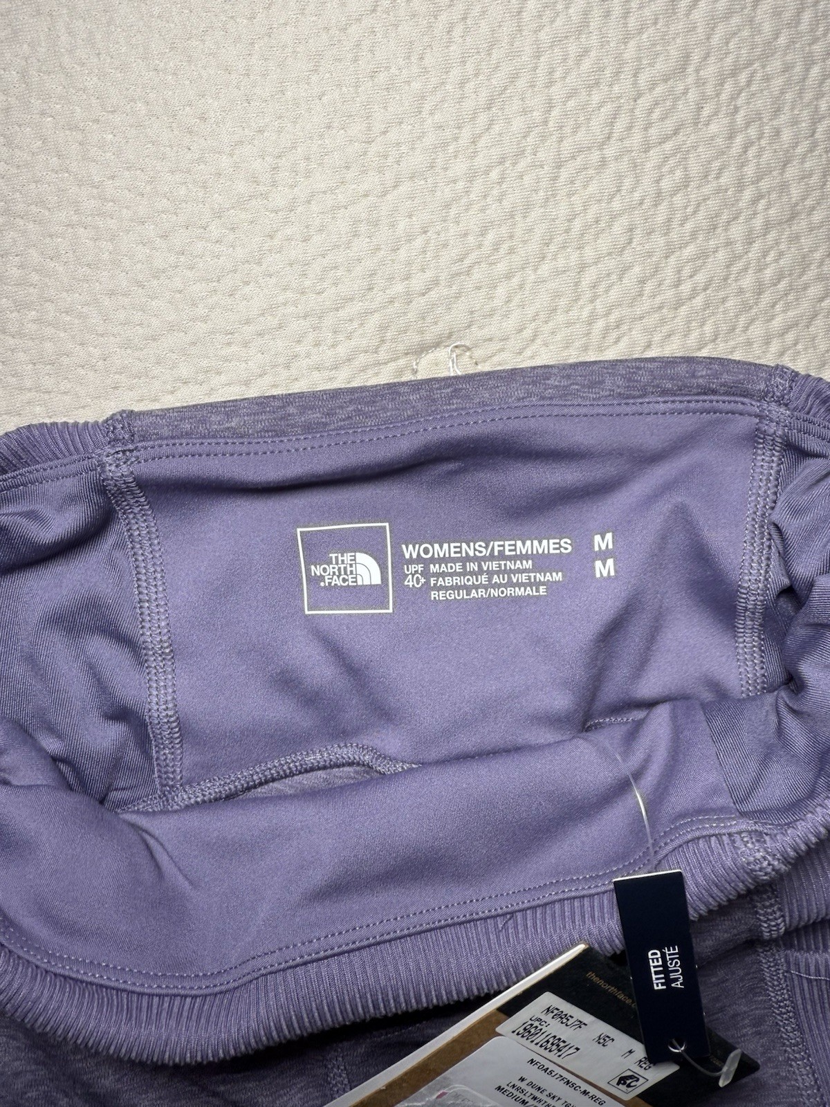This product, new with tags, was purchased from an authorized retailer at a discount price. With VibeLux, our addiction to discount shopping is your gain! The North Face Flash Dry Fitted Leggings in size Medium are a perfect addition to any woman's activewear collection. The purple color and skinny leg style make them versatile for all seasons, while the stretch feature adds flexibility for ease of movement. Easy to care for with machine washable construction, these leggings by The North Face are a stylish and functional choice for active individuals looking for high-quality leggings.