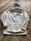 Genuine quality jacket in good condition Interactive allowing a suitable north face fleece etc to be zipped inside Has a n adjustable zip off hood Side chest ventilation zips Two zipped under flap hand pockets Double cinch cord waist Adjustable Elasticated and Velcro strap cuff Fleece lined inner collar Breathable mesh inner lining Has some light rubbing up on left shoulder and sleeve ends does not affect performance or look when being worn Colour is ice blue and grey Pit to pit is 25” Pit to cuff end is 23” Rear collar seam to hem is 32”
