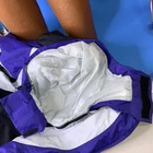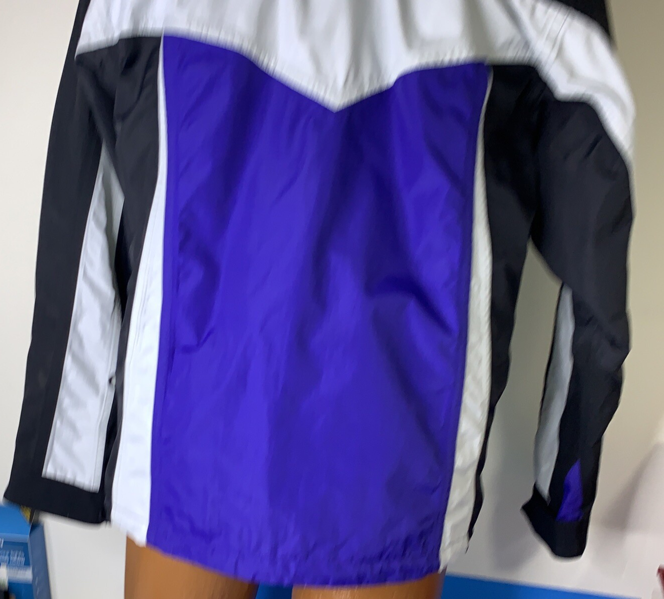 The North Face Jacket Medium Winter Ski Outer Shell Jacket Black Silver Purple Nice heavy outer shell, no inner (zippered) liner is included. (w.o liner, weighs over 2 lbs) The model and complimentary inner detachable liner info is unknown. Pre-owned. Shell only, the inner removable liner is not included. Nice condition, with working zippers, hook and loop, pulls. The zippered, detachable hood with hook and loop is included. See photos. The inner waist elastic, buttons and hook and loop all in great condition. The zippered, upper front chest is vented and good. The 2 outer zipper pockets are good.The 2 inner upper pockets are good.