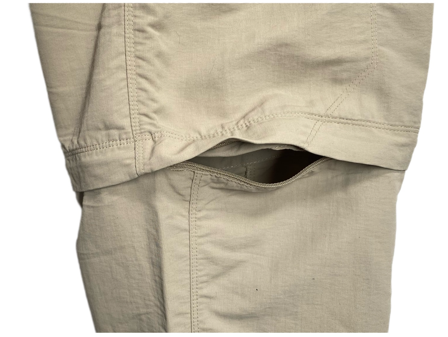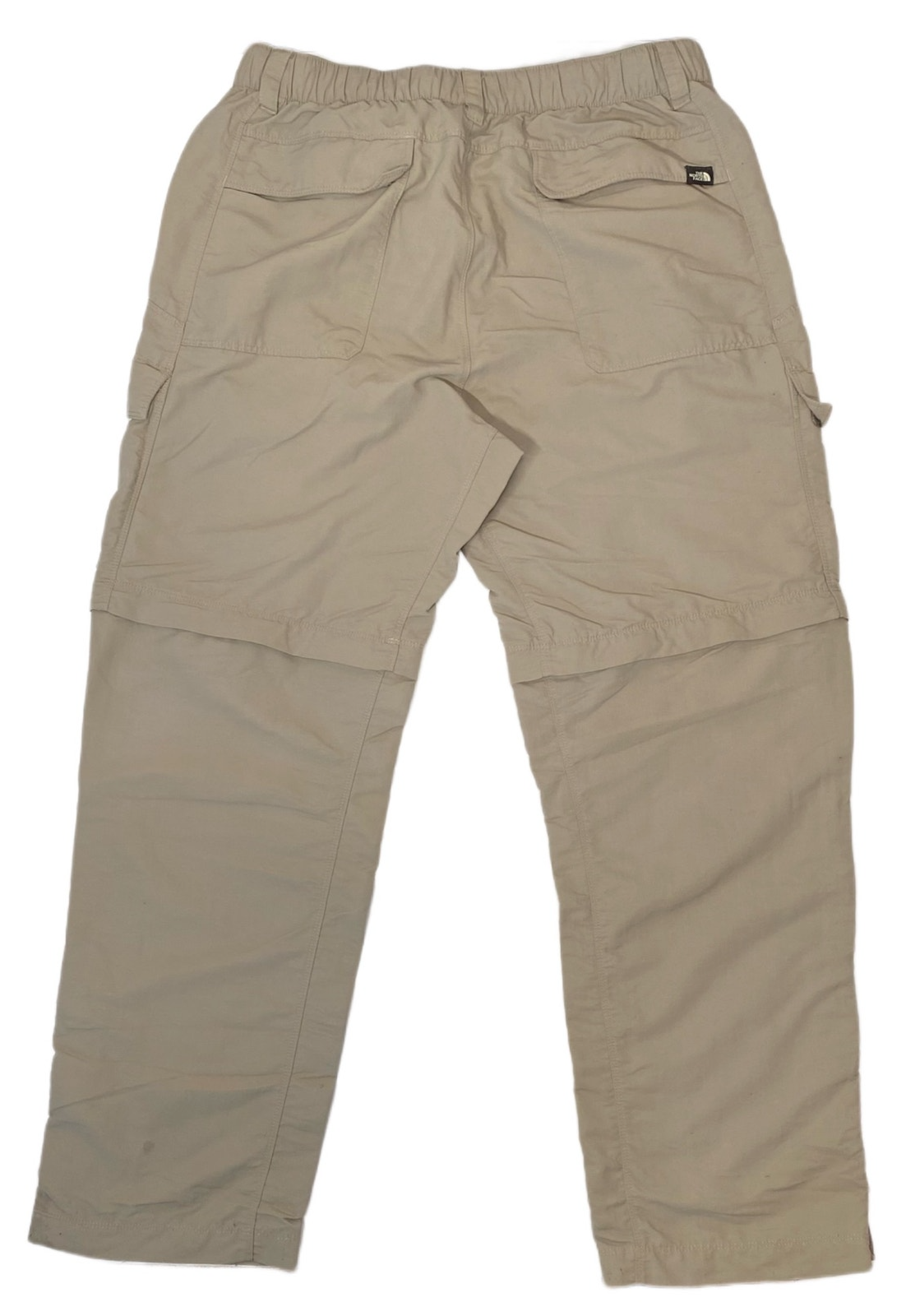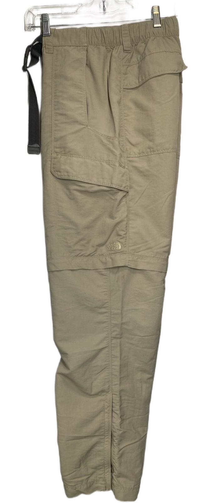 The North Face detachable cargo pants. Zip cuffs. Adjustable waist. Web adjustable belt. 100% nylon. Khaki color. Waist size 38. Inseam 32” pants, 9.5 inseam on shorts. Rise 11”. There is a small stain as shown in photo. Small rip on bottom of pant leg as shown in photo. From a smoke free, pet free environment.