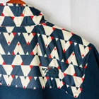 The North Face Jacket Mens Blue Geo Print 300 Tundra Size Large Chest Armpit to Armpit 23" Length Shoulder To Hem 28" Sleeve From Shoulder Seam to Cuff 26" Polyester Fleece Material Full Zip Closure Nylon Geo Print Upper Vertical Zip Chest Pocket Two lower slit hand warmer pockets