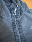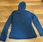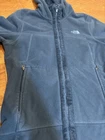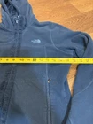 Some mild washwear and paint flaking off the zipper clasp. See photos. The North Face Medium Morningside Hoodie Fleece Jacket in Teal Blue is a stylish and versatile outerwear piece for women. Made with polyester outer shell and fleece lining, this short jacket features a full zip closure, zippered pockets, and a hood for added warmth and comfort. The teal blue color adds a pop of color to any casual outfit, making it a practical and fashionable choice for everyday wear. Easy to care for with machine washable instructions, this jacket is perfect for staying cozy and trendy during the colder months.