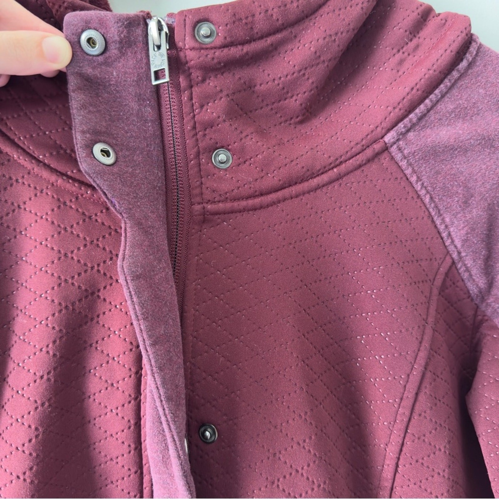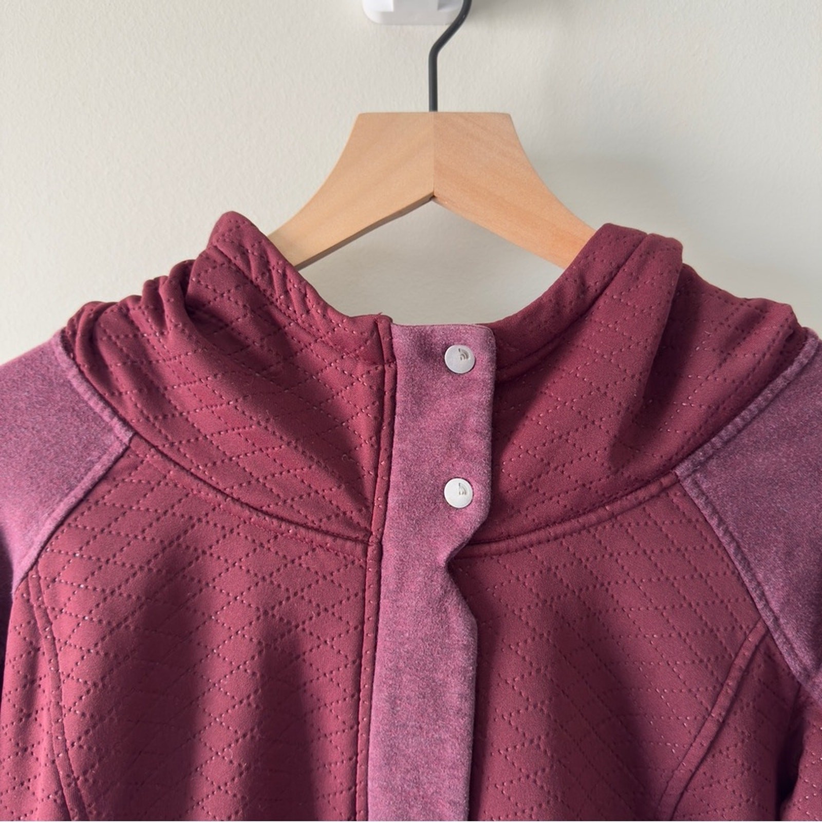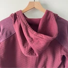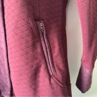 This red utility jacket features a practical hood and a tunic-style length, offering a relaxed fit perfect for layering in mild weather. Crafted from a soft material, it combines comfort with a casual style. Condition: Good pre-owned condition with small, unnoticeable discoloration on back right sleeve cuff (see photo). Comes from a smoke-free and pet-free home. Approximate Measurements (Lying Flat): Length: 27 in Chest: 18.5 in Waist: 16.5 in Sleeve Length: 22 in For seller use: 2lb 2117