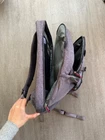 Great, high quality, and durable North Face Surge backpack. 6 compartments: 1 compartment with built in organizer. 1 compartment with a laptop sleeve. Across the chest strap, waist strap, and strap to cinch the backpack compartments shut. 2 water bottle holders on the side. One blemish (tree sap) on the underside. No damage to any zippers or buckles Approx size when empty: 20in length x 13.5in width x 3in depth