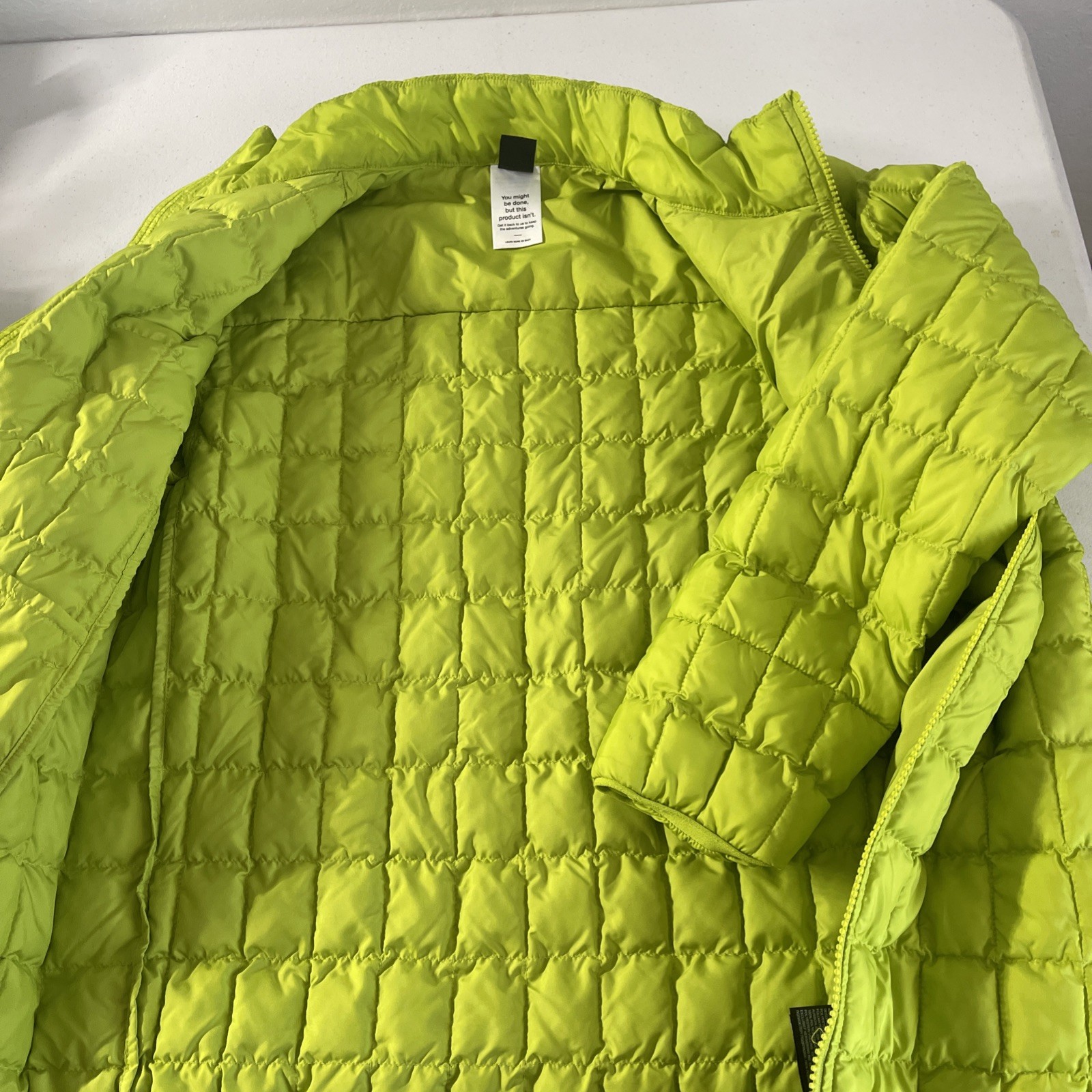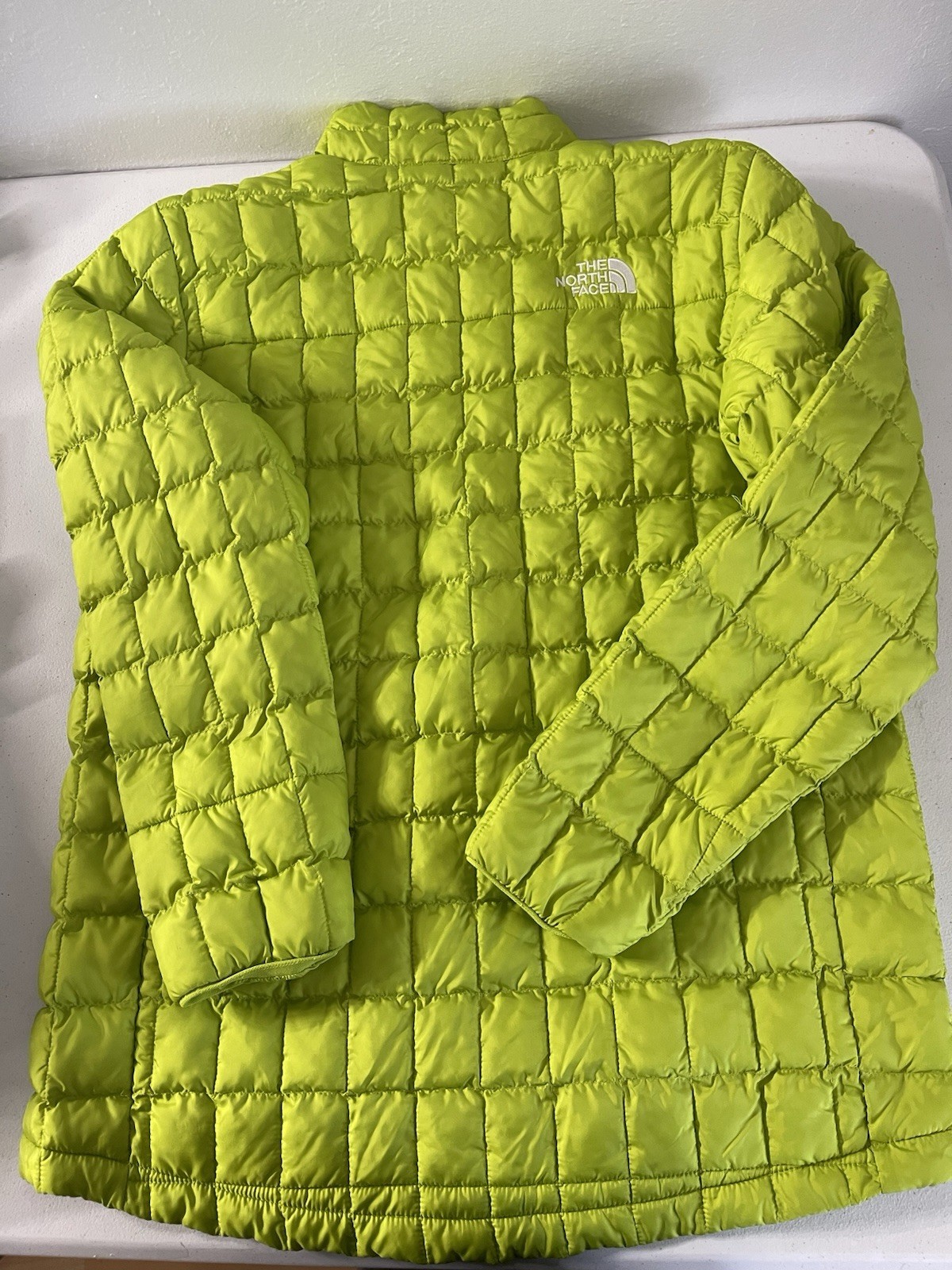 The North Face Thermoball Eco Men's Jacket in Green, size XXLarge, is a stylish and functional puffer jacket perfect for travel and casual occasions. Made with a polyester outer shell and polyester insulation, it is lightweight and insulated for warmth. The jacket features a full zip closure, zippered pockets, and a soft nylon lining for added comfort. With its solid green color and outdoor theme, this jacket is ideal for outdoor activities like walking and hiking, making it a practical and fashionable choice for men.