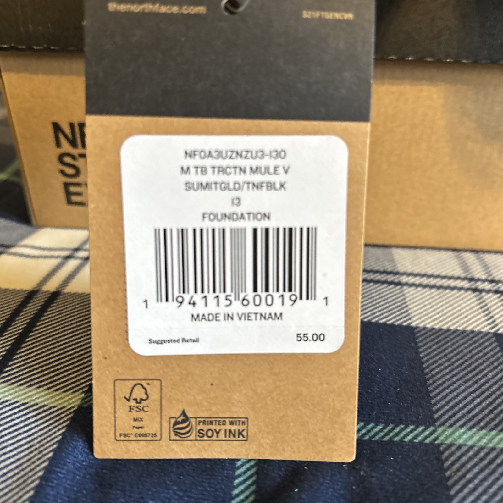 The product is a men's slip-on sandal by The North Face, featuring Thermoball technology for warmth and comfort. The sandal has a bright yellow color with a synthetic lining and polyester upper material. It is designed with a traction outsole for added durability and stability, making it suitable for outdoor activities. The stylish design and slip-on style make it a convenient and fashionable choice for everyday wear.