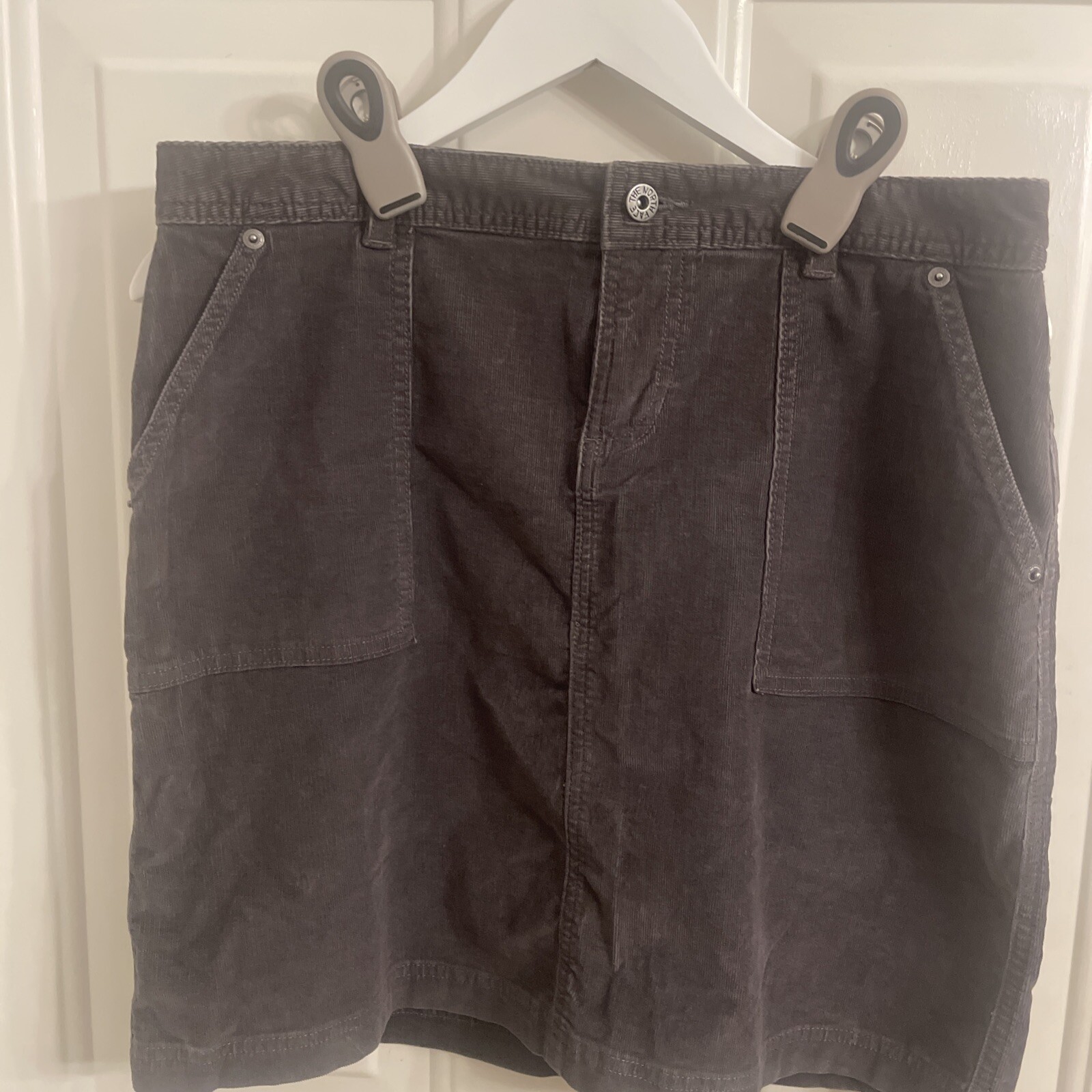 This product is a women's skirt by The North Face in size medium, made of gray corduroy fabric. The skirt features multiple pockets and has a midi length, making it a versatile and stylish addition to any wardrobe. The straight and pencil style adds a touch of sophistication, perfect for everyday wear or dressing up an outfit. Its quality fabric and brand ensure both durability and a trendy look for the modern woman.
