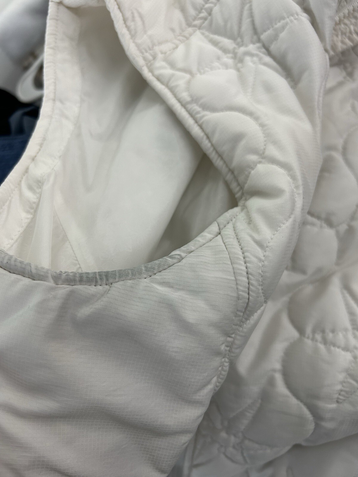 Elevate your wardrobe with this stylish and functional North Face vest. The vest is made of high-quality polyester material and features a quilted design that provides excellent insulation. It is a sleeveless vest that is perfect for mid-length and comes in a beautiful white color that is perfect for any occasion. The vest has a reversible feature that gives you two options for wearing it. The North Face logo on the vest adds a touch of style to it. The vest has a zip closure that makes it easy to put on and take off. The vest is a perfect addition to any wardrobe, and it is suitable for any season.
