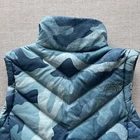 North Face Vest Womens Small Blue Camouflage Full Zip 550 Down Please see photos for condition and actual measurements. If you have any questions please don't hesitate to ask. Fast shipping.