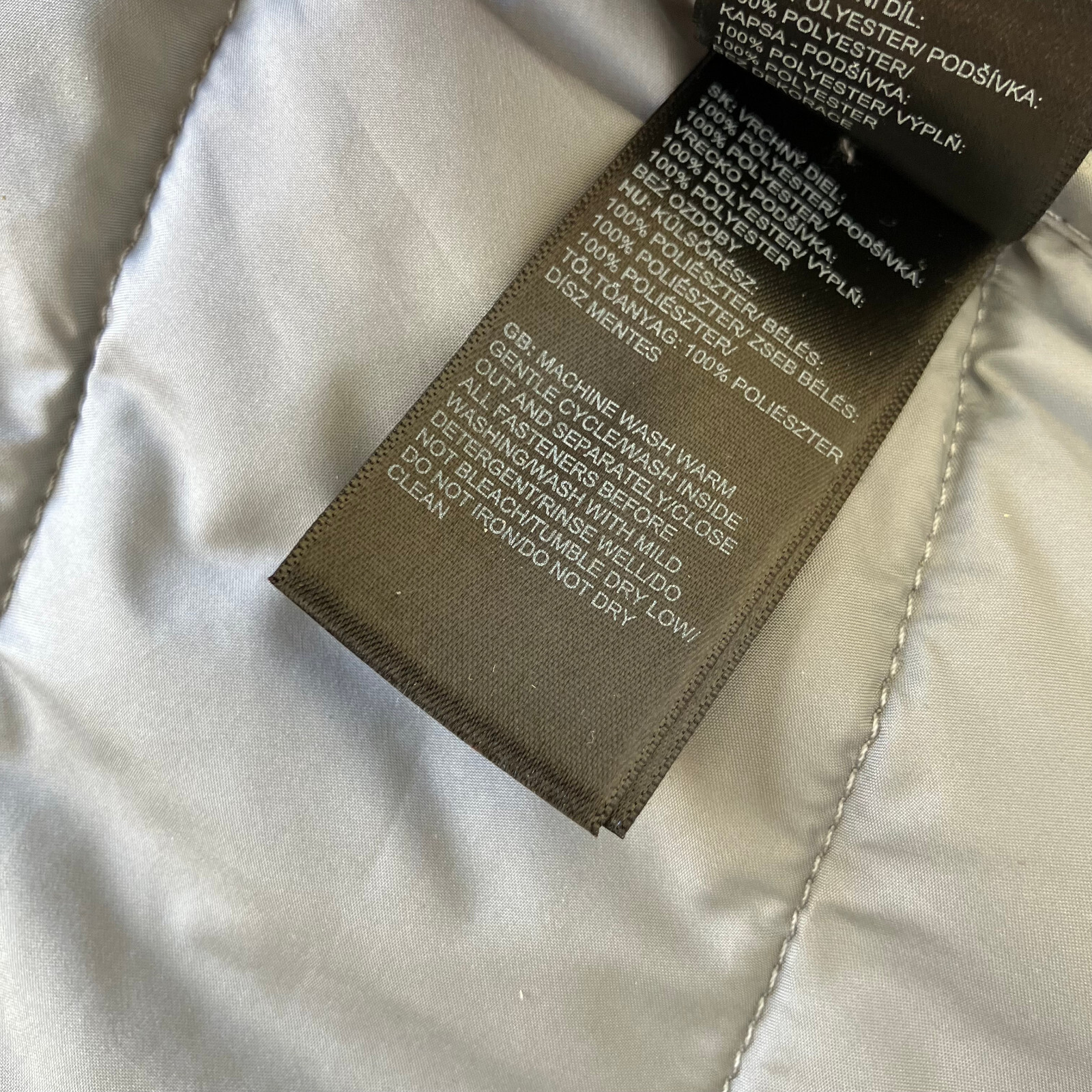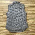 The North Face "Tamburello" grey quilted puffer vest has flattering "V" shaped stitching, back of vest is slightly longer than front. Full zip front closure with zippered pockets at hips. Embroidered logo at left front chest and back right shoulder. 100% polyester outer shell & lining, machine washable, tumble dry at low heat setting. Very good pre-owned condition. The pictures show the actual item that you will receive. Garment measured laying flat: Bust: 19 1/2" across (39" around) Waist: 18" across (36" around) Hips: 19 1/2" across (39" around) Length: 27" measured from shoulder to bottom hem Manufacturer description: "This vest includes 100 g of Heatseeker insulation, along with VISLON zippers on the center front and hand pockets. The darting detail adds a tailored appearance. With a funnel collar, high-low hem, and subtle TNF logo embroidery on the left chest and back-right shoulder, the vest provides extra coverage. Its Standard fit allows for comfortable layering and wearing." Ships from Alberta, Canada. Tax applies to purchases .