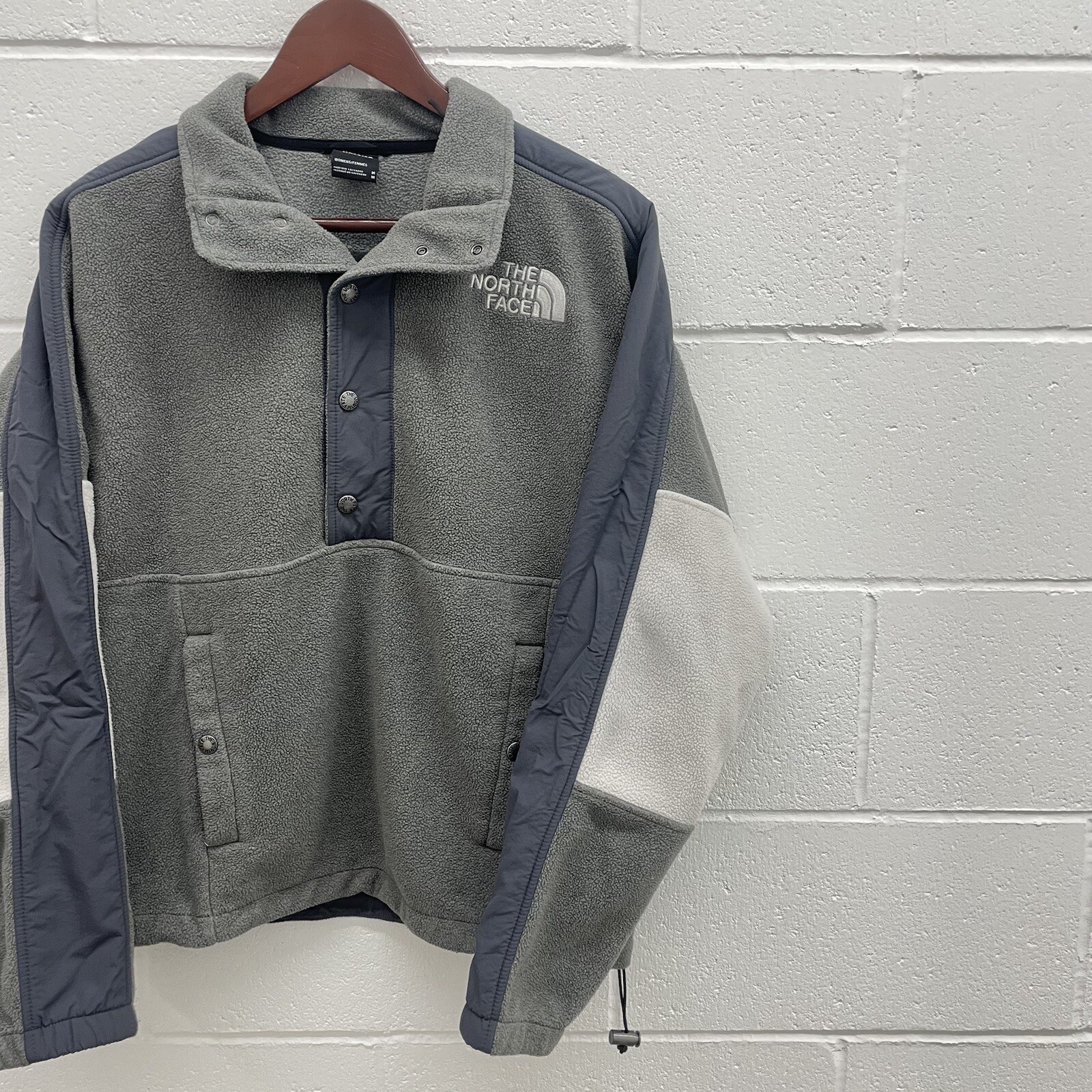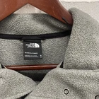 Measures ~ 25 in x 25 in Elevate your casual style with this chic The North Face Three Tone Fleece Snap-T jacket. The jacket features a solid gray color with a logo accent that adds a touch of elegance to your outfit. It is made of high-quality polyester outer shell material and has a polyester lining material for added comfort. This versatile jacket has both zip and snap closures and is machine washable for easy maintenance. It is perfect for travel, walking, and casual occasions. The jacket is a regular fit and is available in size M. Its insulation material is also polyester, making it warm and suitable for cold weather.