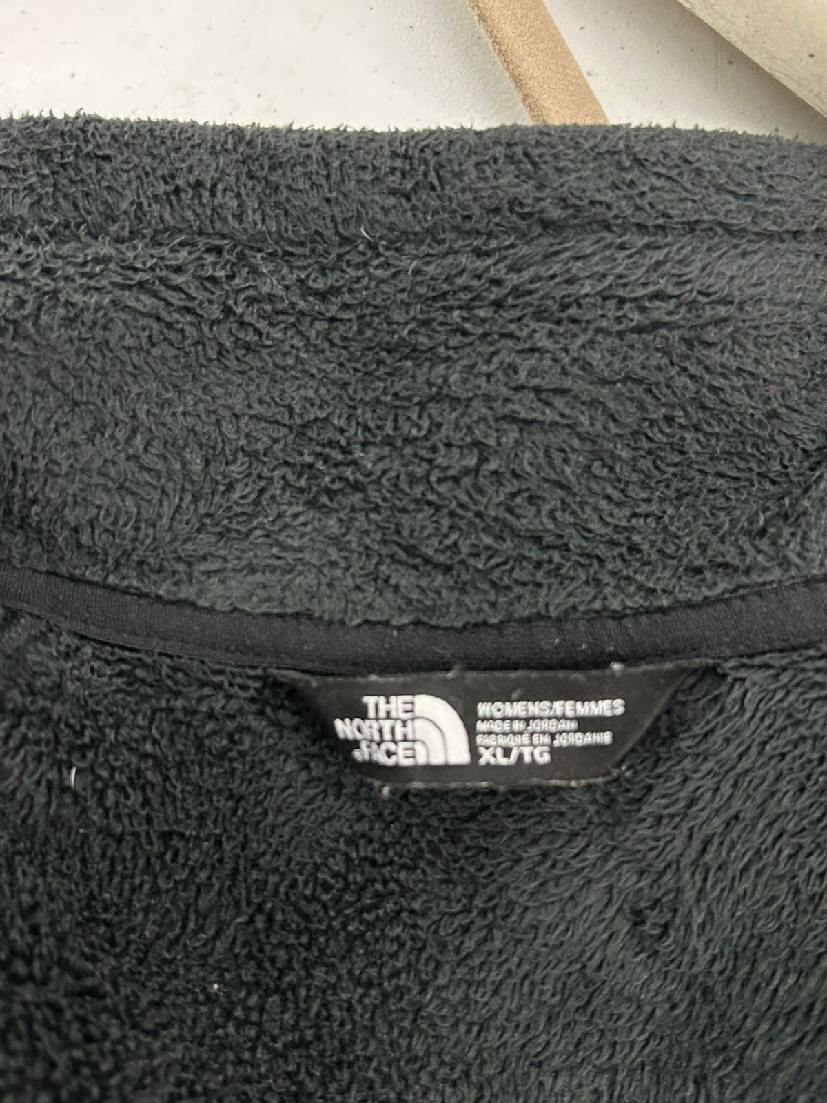 The North Face Women's Size XL Fleece Black Full Zip Jacket is a stylish and practical outerwear option for women. Made from polyester fleece, it provides warmth and comfort, making it ideal for travel or outdoor activities. The jacket features a full zip closure, long sleeves, and a solid black color with logo accents, giving it a classic and versatile look. With a regular fit and XL size, this jacket is sure to become a staple in any woman's wardrobe for chilly weather.