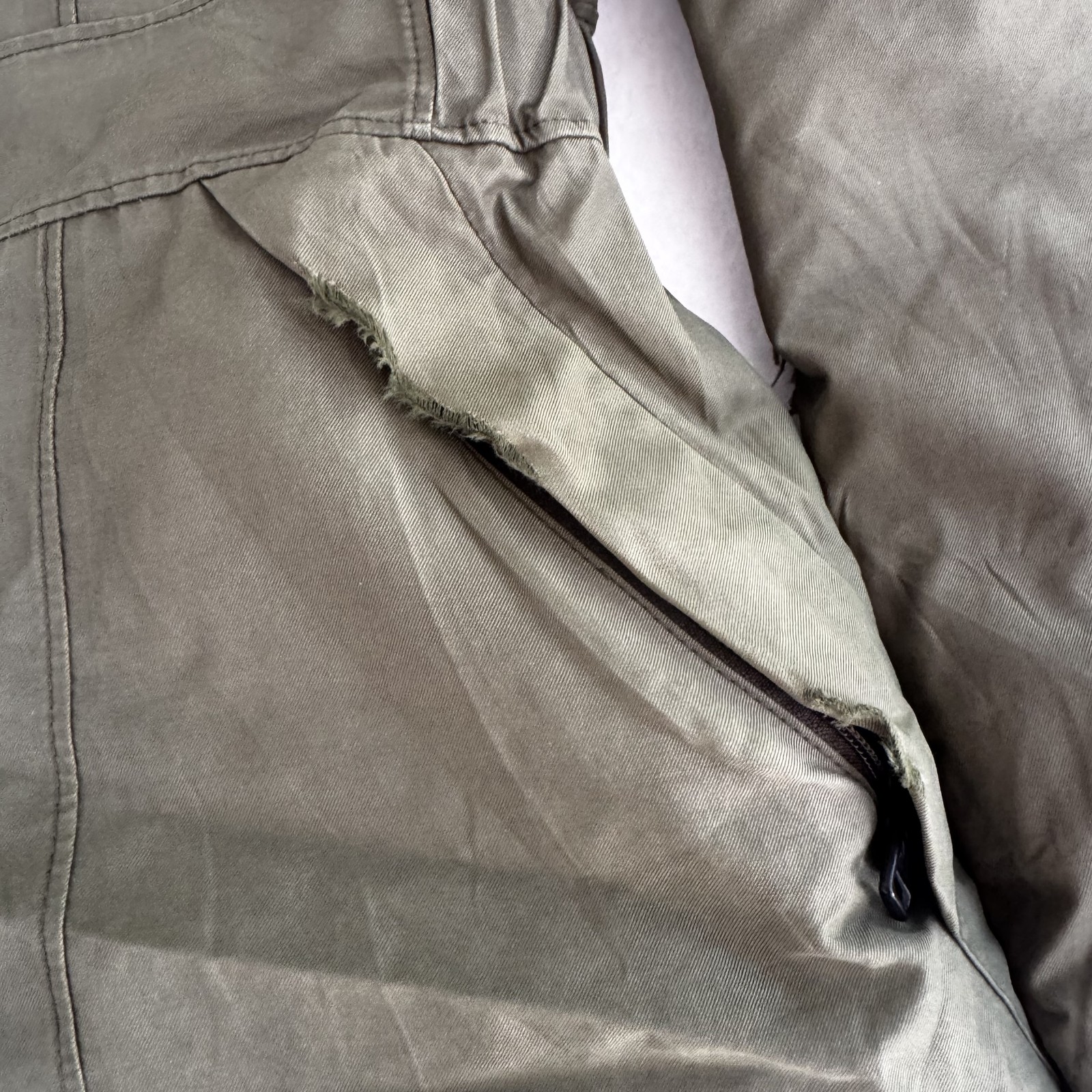 North Face Down Parka Jacket Womens XS Olive Green Hooded Long Coat F15 Condition: Fair used condition. Multiple flaws present including a notable tear at the right pocket, fraying at the pocket edge, and a tear at the seam near the left side (see photos). General overall wear with no missing buttons or zipper pulls. Jacket is still functional but in need of repairs. Shell: 59% cotton, 41% nylon. Faux fur: 71% acrylic, 29% polyester. Lining: 100% polyester. Insulation: Goose down (75% minimum down cluster). Olive green exterior, zip front with snap overlay, two zip pockets at hips, North Face logos embroidered on sleeve and upper back. All interior and exterior branding present. Lined with patterned brown print. Waist features light gathering for a tailored fit. Style code: F15 (Fall 2015 collection) Tag size: Womens XS Made in Indonesia Ideal for parts, repair, or restoration. Sold as-is—please see all photos for a full view of condition and defects.