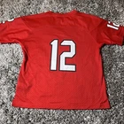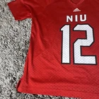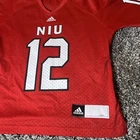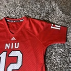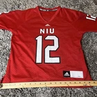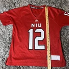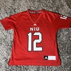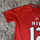 This is a women's Adidas NCAA jersey for the Northern Illinois Huskies, featuring player #12. The jersey is officially licensed, in size S, red in color, and styled for women. It is a product of Nicaragua and is suitable for fans of the Northern Illinois Huskies to show their support.
