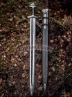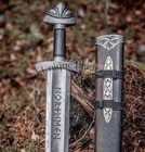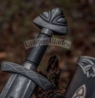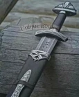 nd Forged Damascus Steel Viking Northmen Sword, Battle Ready Medieval Sword PRODUCT SPECIFICATION Blade Material: Damascus Steel AMAZING RUNES ON THE BLADE Handle Material: Ash Wood AMAZING SILVER Etched GUARDS Overall Length: 38.0 inches Blade Length: 29.0 inches Handle Length: 9.0 inches With Gorgeous Design Wood Scabbard PRODUCT DESCRIPTION This superb design Sword is hand forged. The blade of this Sword has a nice file work and is made of 512 Layers of Stainless Steel and High Carbon Steel with a hardness of 55-60 HRC. This robust Sword is lab tested under intense conditions, the balance and shape of this Sword ensure perfect grip. Blade Material Damascus Steel Handle Material Ash Wood This Northman 1095 Damascus Steel Viking Sword is a stunning addition to any collection. With a blade made of high-quality Damascus steel and a full tang, this sword is perfect for anyone who wants a durable and reliable. The ambidextrous design and single-handed handle make it easy to use, while the black color and Japanese style give it a unique look. This sword comes with a scabbard and is an original piece from UNIQUE BLADES, a trusted brand in the industry. It is made in Pakistan and has a double edge, making it perfect for both slicing and stabbing. Whether you're a collector or a warrior, this Northman sword is sure to impress.