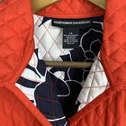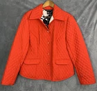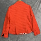 This Norton McNaughton women's jacket in size 14 features a stylish quilted design in a vibrant red color. The mid-length jacket is made of polyester with a button front closure and convenient pockets. Ideal for travel, casual outings, or workwear, this jacket is both practical and fashionable for the fall and spring seasons. It is machine washable and has a polyester lining for added comfort. The brand, Norton McNaughton, ensures a quality and stylish piece for everyday wear.