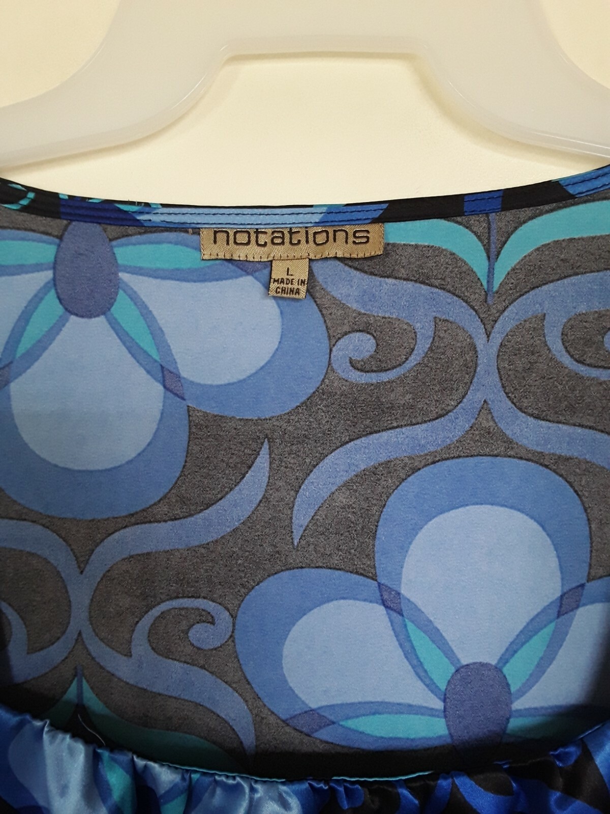 Notations Size L Pullover Poly/spandex 3/4 Sleeve Top, Satin NEW Armpit-armpit: 20" Sleeve Length 23" Length: 30" AT Combined Shipment: USA : Highest item shipping cost + $3.00. for each subsequent item.Or, you can purchase as many items as you choose and pay the flat rate of $ for your Priority Mail Large Flat Rate Box which covers your entire order. Please read the disclaimer below. INTERNATIONAL SHIPMENTS: Highest item shipping cost {+ Item weight.} for each subsequent item. Please read the disclaimer below. DISCLAIMER on Shipping Costs: Our intention is to keep our shipping costs as low as possible. However, depending on the item purchased (weight) and the destination, shipping rates can vary; especially 30 Day?s No Questions Asked Returns Policy: Your satisfaction is very important to us. We have a 30 days NO QUESTIONS ASKED returns policy. The item must be returned in the condition in which it was purchased. If there are labels/tags they should not be removed. If they are, the item will be sent back to you. ANY SHIPPING COSTS WILL NOT BE REFUNDED. BOTH WAYS, receiving and any returns. Please contact us for the return shipping address and authorization. ALL COMMUNICATIONS MUST BE IN WRITING & TAKE PLACE THROUGH THE EBAY SITE ONLY. No private direct email correspondence. A customer care rep. will respond to you within 24 hrs (Mon-Fri). Once we have received the merchandise and inspected it, please allow 72 hours for a refund to be issued. NO See my other listings for more great items! We accept PAYPAL. Also we have a virtual terminal with PayPal through which we can accept Visa, MasterCard, Amex, and Discover. If you do not have a PayPal account, it takes virtually minutes to open International shipments: PLEASE DO NOT PAY until we determine your shipping costs. Most of our items also have an International Flat-Rate. Although, if due to the destination or the weight we are unable to honor the rate mentioned in the item?s listing, we will cancel your order and leave you positive feedback. Usually we use the US Postal Service. The best international rate for an international shipment is First Class (up to 4 lbs.)If your items exceed 4 lbs. we may pack them into two separate packages (and notify you of this).You still are eligible to take advantage of the combined shipping rates, even if we have packed them into two separate packages. The fees for packaging, shipping, insurance, Customs Duty Charges on international shipments are all the responsibility of the Buyer and are not included in the purchase price. If the item(s) are gifts, we could indicate ?GIFT? on the customs form so you would avoid paying more on duty.