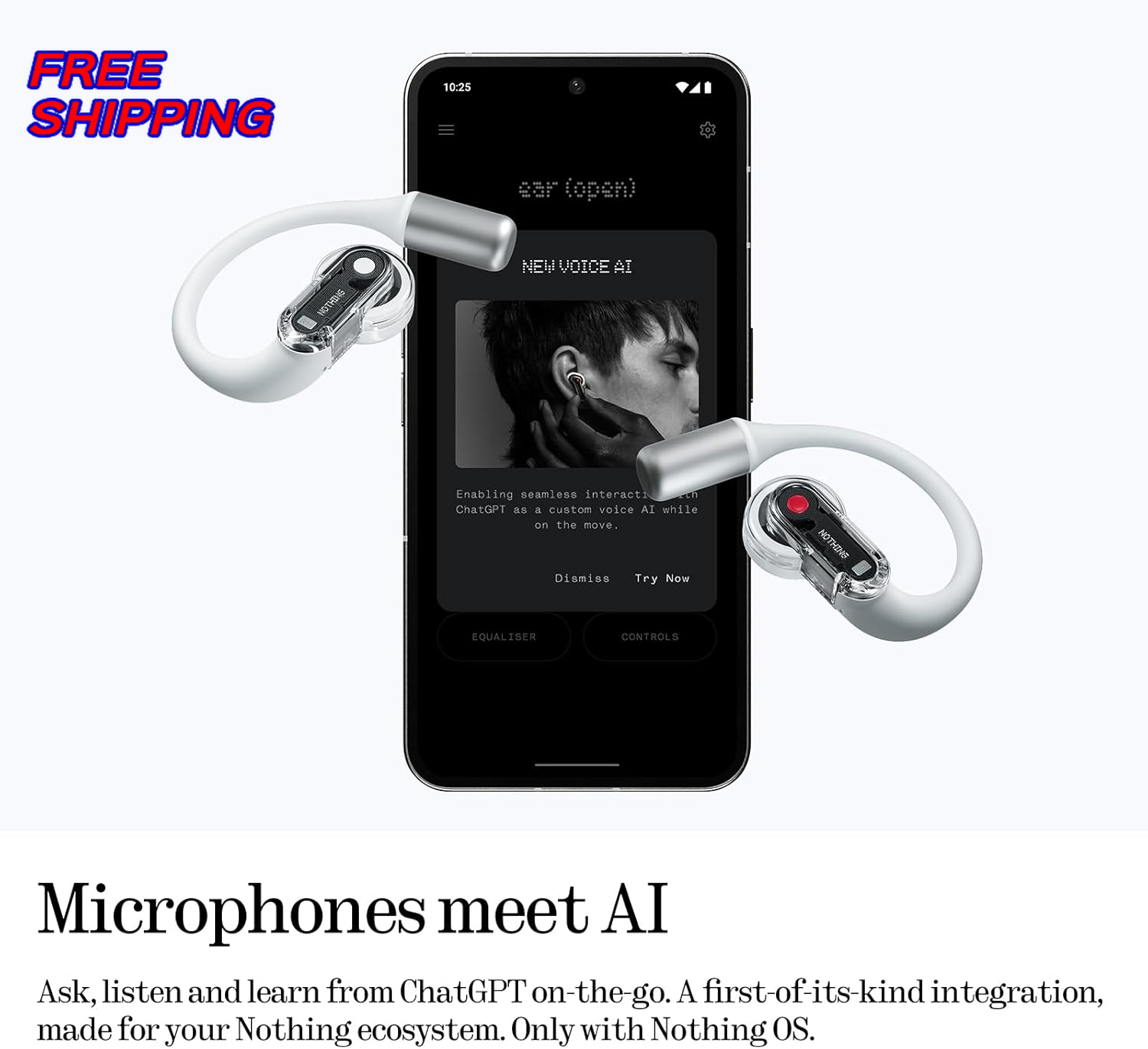 Store New Arrivals Add to Favorite View Feedback Contact Nothing Ear Open Open Ear Headphones Earbuds Earhooks BT 5.3 Clear Voice White Description Impedance 32 Ohm Form Factor On Ear Ear Placement Open Ear Item model number B182 Style Modern Number of Items 1 Control Method App, Touch Supports Bluetooth Technology Yes Battery Life 30 Hours Noise Control Hybrid Noise Cancellation Input Device Interface Bluetooth Wireless Communication Technology Bluetooth Cable Feature Without Cable Product Dimensions 2.02 x 1.63 x 0.57 inches Material Silicone Model Name Nothing Ear (open) Ear Placement Open Ear Audio Driver Type Dynamic Driver Hardware Interface USB Form Factor On Ear Specific Uses For Product Entertainment, Travel Bluetooth Version 5.3 Age Range (Description) Adult Included Components User Manual Water Resistance Level Water Resistant Carrying Case Material [EI] Plastic Item Weight 1.4 ounces Connectivity Technology Wireless Headphones Jack No Jack Impedance 32 Ohm Charging Time 30 Hours Generation 1 Compatible Devices Cellphones, Laptops, Portable Media Player, Tablets Batteries 2 C batteries required. (included) Manufacturer Nothing Brand Nothing Earpiece Shape ear hooks Nothing Ear Open Open Ear Headphones Earbuds Earhooks BT 5.3 Clear Voice White Comfortable to Wear: Nothing Ear (Open) ultra-light open earbuds feature an ergonomic open ear hook design with a 50-degree tilt, a three-point balance, and skin-friendly silicone for all-day comfort and a secure fit. Please distinguish between left and right, and adjust the position of the earbuds into the ear according to the shape of your ear after wearing to bring you a better and more comfortable listening experience. Immersive Sound Quality: These open-ear headphones serve up rich bass and crisp treble, powered by an innovative stepped driver. Its uniquely shaped diaphragm, titanium alloy coating, and ultralight components deliver clear, balanced audio—making every note stand out. Bluetooth 5.3 & Seamless Dual Connection: These open-ear wireless earbuds feature the latest Bluetooth 5.3 for stable, low-latency audio—perfect for sports, fitness, travel, and office use. With multipoint pairing, they seamlessly switch between music and calls, delivering a hassle-free open audio experience with minimal setup. Whether you’re working out, commuting, or in meetings, the smooth dual connection elevates convenience in daily life and work. Clear Calls: Open-ear earbuds deliver clear calls via dual microphones and AI noise reduction, trained on 28 million samples. A sound isolation system minimizes leakage and protects privacy. Sound custom supported(EQ, low-latency gaming) via the Nothing X app. IP54 dust and water resistance make them ideal for any outdoor activities. Ultra-long battery life: These open-ear Bluetooth headphones offer 30 hours of combined playback. The earphones provide up to 8 hours of playtime, with a stylish transparent fast charging case extending it to 22 additional hours. All-day use effortless supported. Efficient Performance and Smart Integration: The Nothing Ear (open) sport open ear features seamless ChatGPT voice control within the Nothing ecosystem (earbuds connected to CMF & Nothing phones), along with custom widgets, Microsoft Swift Pair, Google Fast Pair, AAC/SBC audio support, LED charging indicators, and pinch controls. Nothing Ear (Open) Wireless Earbuds – the perfect blend of immersive sound and environmental awareness. These open ear earbuds let you enjoy music while staying connected to your surroundings, ideal for runners, commuters, and adventurers. Key Features: Ultra-light 8.1g ear hooks with a 50-degree gravity-tilt design ensure a secure fit during burpees, trail sprints, or subway dashes – no constant adjustments, just weightless comfort. These bluetooth earbuds stay put through every move. Unlike traditional earbuds, their titanium-coated diaphragm delivers rich bass while preserving ambient sounds. Hear your trainer’s cues over , detect sirens when cycling, or catch announcements mid-playlist – making them top running earbuds and sport earbuds. Need privacy? The Sound Seal System of these open ear headphones contains audio like an invisible dome. Dual AI-enhanced mics with Clear Voice Technology 3.0 eliminate wind and gym noise, so these earbuds with microphones ensure clear calls for cyclists or runners. Pinch controls let you skip tracks, activate voice assistants, or mute mics – even in rain. More Else: IP54 waterproof rating handles HIIT sweat or downpours, while 30-hour battery life with the charging case powers all-day use. OS-smart connectivity (Swift Pair for Android, Fast Pair for iOS) enables instant device switching. Customize sound via the Nothing X app – craft your EQ in three swipes, whether you want heavy bass for workouts or smooth treble for podcasts. Pair with CMF/Nothing phones to unlock voice-controlled ChatGPT – log PBs mid-sprint or translate signs without stopping. ABOUT US We offer the best prices around on high quality products. Our E-store includes media such as books, movies, music and games while offering electronics, toys, sporting apparel, clothing, tools, general home, garden items and more. SHIPPING We are always working hard to ensure your package arrives as soon as possible. Please understand that some factors like weather, high postal traffic, and the performance of shipping companies are outside of our control. We offer free shipping to the lower 48 states and ship within 2 business days of payment, usually sooner. We do not accept P.O. Boxes. Please provide a physical address. RETURNS We offer a 30-Day Return Policy on items which you are not completely satisfied with. You have the option for a full-refund or an exchange of the item. No returns are available on items shipped outside of the USA. PAYMENT We accept PayPal. CONTACT US This page content is yet to come Please ad us to your favorite seller and visit again later Thank You CUSTOMER S