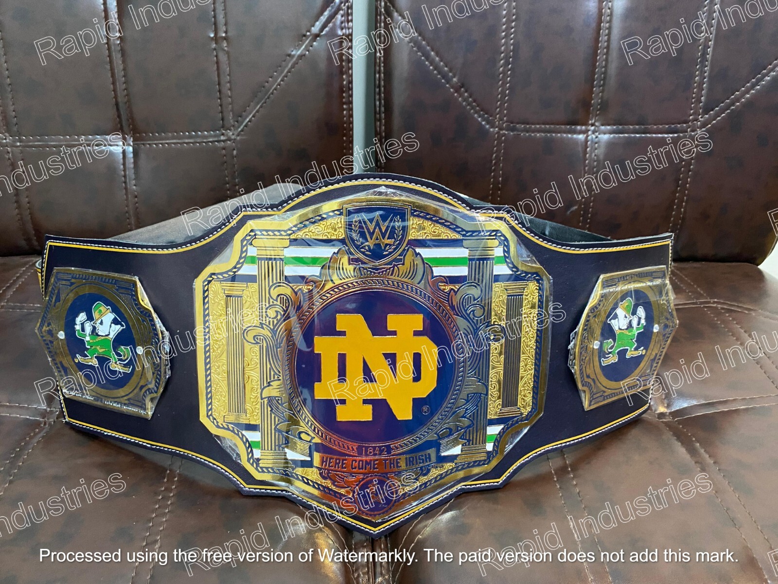 Notre Dame Fighting Irish Championship Legacy Title Belt Adult Size 2mm Brass 100% ORIGINAL LEAT HER STRAP PLATE MATERIAL BRASS PLATE THICK 2mm Strap Is Made With Top Quality. Strap Color You Can Change On Demand. Adult size Full length belt almost 50inch Fits upto 50 inch waist We manufacture all types of wrestling and boxing belts in good and standard quality, apart from this we also manufactue customized belts. You can trust us and place orders without any worries, We do not compromise on our quality. We use good quality leather on our belts and we strive to create a belt that meets the customer's expecations. If you buy more then 1 item, you will also be given a discount. Shipping: We will ship your belt within 7 working days after receiving full payment. We shipped through DHL or FedEx. FeedBack: If you have any problem related to the product, please contact us before giving negative feedback. Your feedback is very important to us and to new customers, so be sure to share your opinion.