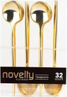 LUXURIOUS DESIGN: Elevate your table setting with these Novelty Flatware Gold Teaspoons - a modern and stylish addition to any party, gathering, or event. Their eye-catching golden shimmer and sophisticated shape are sure to impress your guests and make a lasting impression. SUPERIOR QUALITY: Boasting durable and premium-grade plastic construction, our 32-count gold teaspoons not only offer an upscale and luxurious look but also guarantee longevity – ensuring that every scoop is as enjoyable as the first one. COMPLETE SET: Never run out of teaspoons for your dining needs! This generous 32-count pack allows you to serve a large number of guests, making them ideal for weddings, banquets, family gatherings, or corporate events. VERSATILE & PRACTICAL: Perfect for a variety of occasions, these gold teaspoons can effortlessly blend in with both casual and formal table settings, enhancing your dining experience without breaking the bank. Enjoy their multi-purpose use at holiday dinners, baby showers, or even intimate family meals. EFFORTLESS CLEAN-UP: Designed for convenience, our disposable gold teaspoons take the hassle out of post-event clean-up. Simply toss them away after use – leaving you with more time to make sweet memories with your loved ones. Order your Novelty Flatware Gold Teaspoons today and add a touch of elegance to your next occasion! Our novelty teaspoons will give every dining experience an artistic vibe!