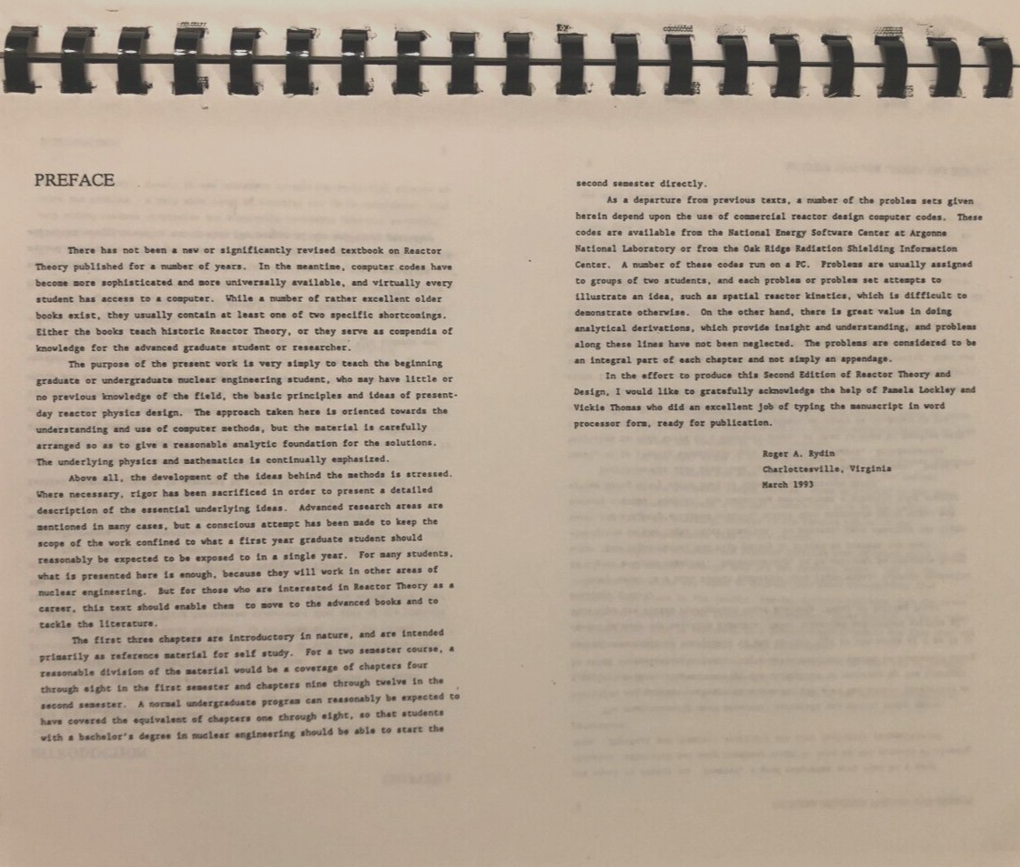 1993 University of Virginia "Nuclear Reactor: Theory and Design" by Roger A. Rydin Spiral-bound Paperback Condition: Pre-owned.