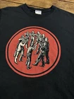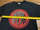 This black Gildan T-shirt features a graphic print of the Nuclear War Now (NWN) official logo designed by Chris Moyen, known for his work in the death and thrash metal music scenes. Made of pre-shrunk cotton with a regular fit and short sleeves, this shirt is designed for unisex adults in size S. It is perfect for fans of thrash metal music, offering a concert or tour theme that reflects the intense and energetic spirit of the genre. This shirt is a must-have for those who appreciate the underground metal scene. EUC!