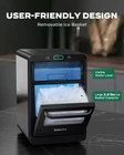 Effortless Ice and Water Refilling: Our countertop nugget ice maker comes with a detachable basket for easy ice retrieval and a pull-out water reservoir for filling and cleaning. Simply fill, press, and enjoy – it’s that simple Rapid Ice Production: This pebble ice maker delivers ice in just 10 minutes and can produce up to 44 pounds of ice a day, ensuring your favorite drinks are always accompanied by delightful crushed ice Hassle-Free Cleaning: Designed for easy maintenance, our pellet ice maker features a one-touch self-cleaning function and removable parts for simple manual cleaning Compact Yet Powerful: Measuring 9.84"x15.04"x16.54", this nugget ice maker combines compact size with impressive performance. It produces perfect, chewable nugget ice that cools beverages efficiently while maintaining their flavor Stylish Design: The LED control panel of this nugget ice maker countertop is user-friendly, with an ambient blue light that enhances visibility and adds a touch of modern sophistication