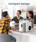 Chewable-Soft Nugget Ice: The chewable ice produced by our nugget ice maker has a soft texture and a large surface area to cool your drink faster and provide an incredibly refreshing experience. It is perfect for use in iced coffee, smoothies, and as a snack ice cube to chew on. Easy to Use: The one-click design makes it very easy to use. When the ice is full or out of water, the light will come on and the ice making will stop until you scoop out the excess ice or add water, and the ice making will resume. Through the transparent window of the nugget ice maker, you can see the ice making process. Efficient Ice Making: Our nugget ice maker can produce up to 33 pounds or 48 cups (8.5 fl oz) of ice per day, making it easy to meet the needs of large families and parties. Perfect for making delicious iced teas, iced coffees, cocktails, and even cold beers while keeping the food fresh. Automatic Self-Cleaning: The nugget ice maker boasts a thorough self-cleaning mode to save you the hassle of frequent cleaning. Additionally, its detachable top makes it easy to access and clean manually for deep cleaning or descaling Compact Size: The countertop ice makers measures only 12.32 x 9.92 x 14.33 inches, making it space-saving and easy to store when not in use. It can fit in most countertops and takes up less space in your home, office, BBQ, outdoor party or basement bar