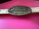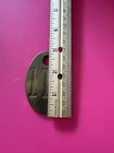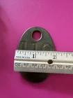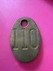 This heavy brass cattle tag, numbered 110, is a must-have for any cow collector. Measuring 3 inches by 2 inches, this oval-shaped tag features dual sides with an intricate stamped design. Crafted in the United States, this high-quality tag is perfect for attaching to your favorite cow or cattle. The tag is ideal for those interested in collectibles, animals, and farm and countryside items. It is made from brass, a durable and long-lasting material, ensuring that it will withstand the test of time. Add this unique and interesting piece to your collection today.