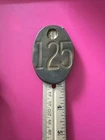 This heavy brass cattle tag, numbered 125, is a must-have for any cow collector. Measuring 3 inches by 2 inches, this oval-shaped tag features dual sides with an intricate stamped design. Crafted in the United States, this high-quality tag is perfect for attaching to your favorite cow or cattle. The tag is ideal for those interested in collectibles, animals, and farm and countryside items. It is made from brass, a durable and long-lasting material, ensuring that it will withstand the test of time. Add this unique and interesting piece to your collection today.
