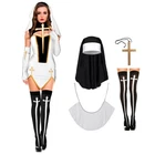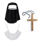 Nun Costume Set Cross Pendant Necklace,Nun Hat Halloween Nun Accessories Features: Package contents,2/3/4 pieces/set optional,1 piece nun hat,1 pair knee thigh high socks (2 pieces),1 piece nun collar,gloves,1 piece cross pendant necklace in gold,different package include different please confirm your need before order. material,the nun hat and stockings make of quality material,soft to touch and gentle to skin,cross pendant necklace make of quality material and not easy to fade, can provide you a long term service and comfortable wearing experience Classical appearance,the nun costume can be paired with your nun dress together, or you can wear them alone to pair with your different styles of outfit, which will make you enjoy the fun of roleplaying Applicable occasions,these nun costume accessories can be worn for cosplay party, halloween, theme party, carnival and so on, wearing them will make you the focuses of the crowd easily Wonderful sweet warm friend family or yourself. Specifications: Cloth 1 2 3 4 5 6 7 8 Package Includes: 1 Set Nun Costume note: Please allow 1-2cm errors due to manual measurement. Due to the difference betweeen different monitors,the pic may not reflect the actual color of the item.