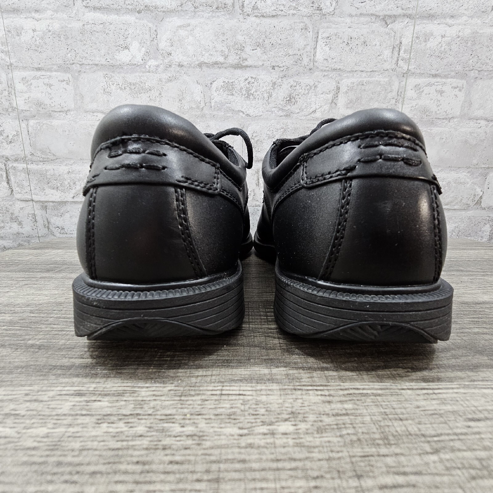 Nunn Bush Kore Pro plain toe oxford comfort gel shoes mens size 12 black. Slip resistant. Excellent pre-owned condition. No rips, tears or visible stains. See photos for best representation.