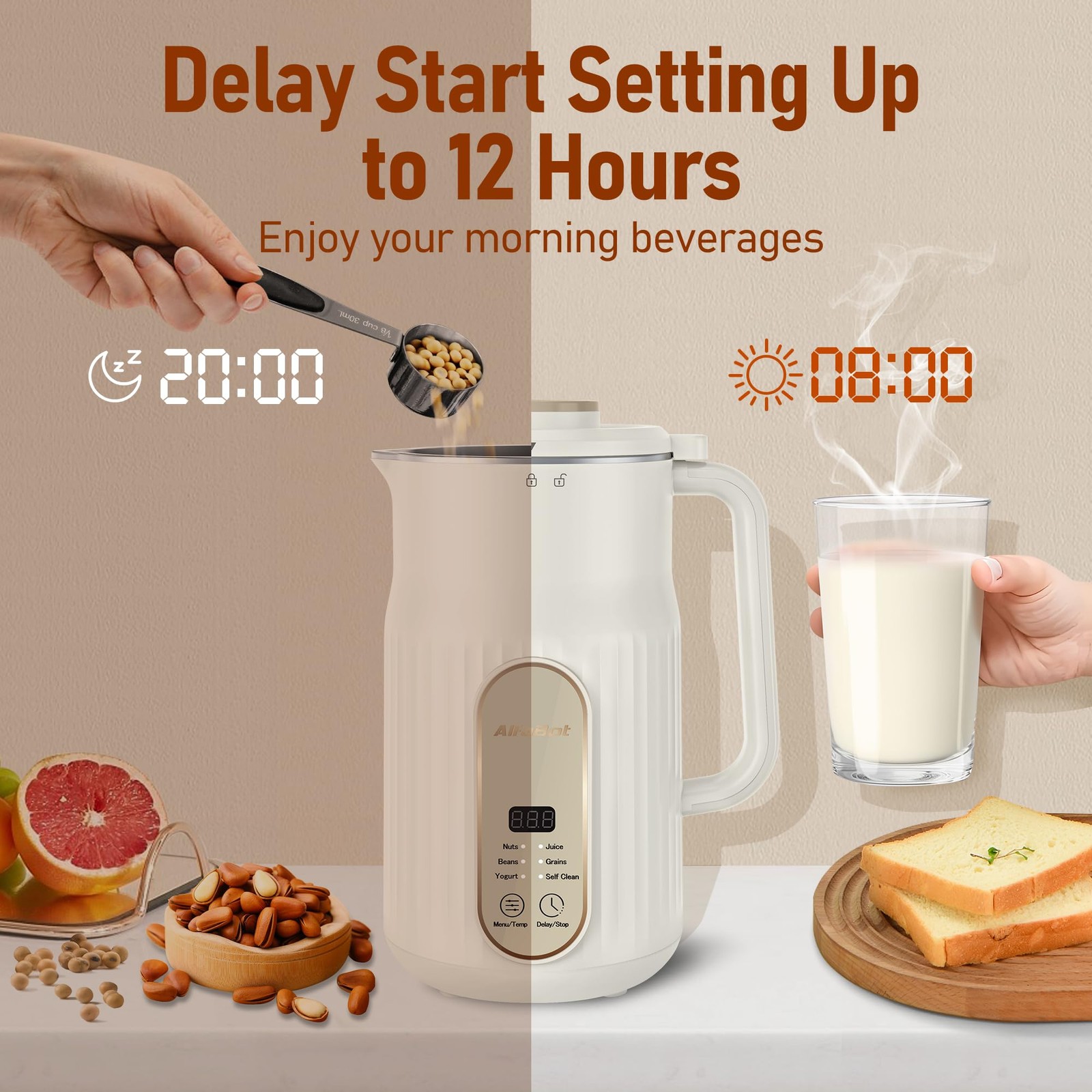 POWERFUL MOTOR - Our nut milk maker features a powerful motor and 10 upgraded durable stainless steel blades that quickly blends and strains your nuts to create a smooth and creamy milk without any grit or pulp. The machine is also equipped with a filter funnel and bag that strains out any pulp or residue, leaving you with a perfectly smooth and silky milk every time. BIG CAPACITY -This N2 Nut milk maker has been upgraded to capacity of 1000ml/35 OZ (about 5 cups), perfectly for family use, just enjoy the fresh home-made milk with your family. CREATE HEALTHY PLANT-BASED MILK - With our soy milk machine, you'll be able to enjoy fresh, delicious nut milk that's from preservatives, additives, and any other unwanted ingredients. It's the perfect way to create healthy and sustainable plant-based milk that's good for you and the environment. Order yours today and take your plant-based diet to the next level! VERSATILE - The nut milk maker machine is versatile and can be used to make a variety of plant-based milks, including almond milk, cashew milk, coconut milk, multigrain milk and more. There're 5 basic mode for meeting your need: Nut, Beans, Yogurt, Juice and Grasins. It's a mixer with blending and boiling fuction. FOOD-MATERIALS - This almond milk machine maker is made of high-quality, food-materials that are easy to clean and maintain (The body inside is made of SUS 304 stainless steel, the lid is made of food-plastic), ensuring that you can enjoy your homemade nut milk for years to come.
