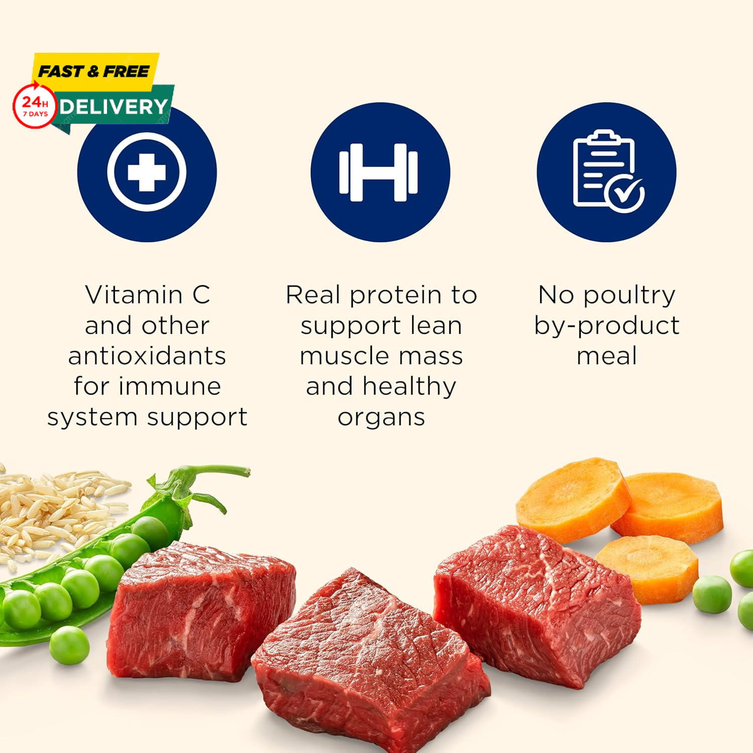 Menu Other Items Feedbacks About Us Contact Us Add To Favorites Nutrish Large Breed Real Beef, Pea, Carrot & Brown Rice Recipe Whole Health Blend Dry Dog Food, 40 Lb. Bag (Rachael Ray) Contains one (1) 40-pound bag of large breed dog food Real Beef is the #1 Ingredient, providing protein to help support lean muscle mass and healthy organs Formulated for large breed dogs with glucosamine and chondroitin to support healthy hips and joints Natural food for dogs with added vitamins, minerals & nutrients Nutrish Large Breed Recipes have many of the same benefits as Rachael Ray Nutrish Big Life with the added benefits of Whole Health Blend Looking for a great large breed dog food? Try Nutrish Large Breed Real Beef, Pea, Carrot & Brown Rice Recipe. This premium dry dog food for large dogs is made with real beef as the #1 ingredient—giving your dog a great source of protein to help support lean muscle mass and healthy organs. It also has chicken meal, a natural source of glucosamine and chondroitin to help support healthy hips and joints. Plus, this Whole Health Blend recipe is carefully designed to support your dog’s active mind, healthy body and balanced energy. Not only will your best friend love the tasty flavor of beef dog food, but you’ll also feel good knowing that a portion of your purchase goes to The Rachael Ray Foundation to help animals in need. Grab a bag and treat your big dog to the delicious, nutritious food they deserve—all while making a difference. Item Specification Age Range Description Adult Number of Items 1 Brand Name Nutrish Brand Ogefine Age Range (Description) Adult Package Dimensions 29 x 20 x 5.5 inches; 40.35 Pounds Specific Uses For Product Large Breed Item Weight 18.3 Kilograms Manufacturer Post Consumer Brands Target Audience Keyword Dogs Flavor Name Beef, Pea, Carrot & Brown Rice Flavor Beef, Pea, Carrot & Brown Rice Size 40 Pound (Pack of 1) Item Form Chunk Specific Uses for Product Large Breed Item Package Dimensions L x W x H 29 x 20 x 5.5 inches Breed Recommendation Large Breeds Dimensions Shipping Returns Additional Info Product Dimensions: 20.0 inches x 29.0 inches x 5.5 inches. Weight: 18.3 kg Fast shipping is very important for us. Our standard shipping service is FREE. Your order will be shipped within 1-3 business days upon full payment received. Most items are delivered within 3-5 business days, however, please allow 3-10 business days. We are shipping only to USA. We only ship to the confirmed Paypal address. We reserve the right to cancel any order for any reason at any time. We are not responsible for undeliverable addresses. We offer a 30 day return policy from checkout winning date. Your satisfaction is guaranteed! If for any reason you are unhappy with your item, just return it within 30 days for a full refund, minus shipping cost. Please contact us prior to initiating a return so that we can issue you a refund authorization. Items defective upon receipt must be packaged in their retail packaging as if new and returned with a detailed description of the problem. Return shipping fees are not refundable. We reserve the right to decline any returns if the above guidelines are not followed. All of our items, unless otherwise stated, will only run on 120 volts. Please check to make sure your country complies with these specifications. If you have a problem or question regarding your transaction please contact us before leaving any type of feedback. We will work with you to resolve any problem you may have.