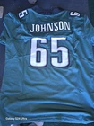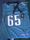 The product is a size XL youth jersey of Lane Johnson from the Philadelphia Eagles, featuring stitched details. It is officially licensed by the National Football League (NFL) and designed for football fans to show support for the team.