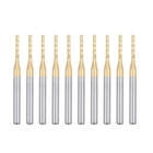 Standrd: Cutting edge diameter: 1.5mm / 0.059"; Shank diameter: 3.175mm / 1/8"; Cutting edge length: 8.5mm / 0.33" Material: Use of ultra-fine grain carbide material with good milling and cutting performance, ensure high work efficiency. Features: High hardness, high wear resistance, high strength. Have sufficient bending strength and wear resistance. Characteristics: Sharp cutting edge, milling, hole and plate edge, surface clean, neat, no glitches. Application: Can engrave PCB, CNC, Circuit boards, Metal, Plastics, Wood, SMT, Fiber glass, Carbon and environmental board. Specification: Cutting Edge Diameter: 1.5mm / 0.059" Shank Diameter: 3.175mm / 1/8" Cutting Edge Length: 8.5mm / 0.33" Overall Length: 38mm / 1.5" Material: Cemented Carbide Surface Treatment: Titanium Coated Package Content: 10 x Carbide End Mill Engraving Bits Description: 1.Made from carbide material, good milling properties to ensure efficient work. 2.Great replacements for your CNC or PCB machinery. With sufficient flexural strength and wear resistance. 3.Sharp cutting edge, milling, hole and plate edge, surface clean, neat, no glitches. 4.Wide ranges of materials can be engraved, including: circuit boards, metal, plastics, wood, SMT, PCB, fiber glass, carbon, etc..