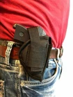 BULLDOG SIDE HOLSTER DESCRIPTION: Gun holster for Phoenix Arms HP 22 By Bulldog. This specially designed gun holster isn't tapered like most gun holsters - and will accommodate many different configurations of pistols. It also features an adjustable thumb break and easily clips onto a belt or your pants (belts up to 2 inch wide). The holster also has a built-in belt loop so you can use it without the metal clip-on device if desired. It's made of durable black nylon w/black nylon stitching and it's adjustable so the holster can be worn on the left or right side - for left or right-hand draw. Gun Holster Features: - Adjustable for right or left-hand draw. - Gun holster can clip onto your belt or you can use the belt loop built into the holster. - Made of durable nylon with padding. - Bulldog brand. - Features an adjustable thumb break for secure retention and custom fit.