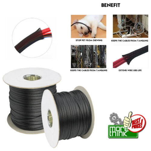 morethink , as an expert in the field of cable management,insist on providing customers with the top quality wire management products. Our cable management is used to wrap and protect wires & organize cables & hide and conceal wires in many application, e.g. Automotive,electronics, home and office etc. Expandable Braided Cable Sleeving - Management & Protection Cabes / Wires. What is Expandable Braided Cable Sleeving? Expandable braided cable sleeving is used as an alternative to heatshrink tubing. The difference between expandable cable sleeving and heat-shrink tubing is that expandable sleeving doesn't require any heating making it convenient, cost-effective and easy to use. The open weave braiding of this cable sleeving simply expands over the cables and components and contracts to provide a tight-fitting cover. The open weave of the sleeve also allows you to examine the wires underneath. Braided sleeving protects wires and cables from damage caused by abrasion from sharp edges, high impacts, and vibration. Cable sleeving, depending on the material used, also gives the cable protection from chemicals and solvents. Adjustable Length & Easy to Install. With our top quality cable concealer,You can easily hide cables and cords.Compared to other on-wall cord cover raceway, our cable hider is no glue , no break the wall and easy to replace. Protect PETS from Chewing Cords ,and will leaveit alone. Worked perfectly for cleaning up wiring on our home theater system. You Can Multiple Sizes & Length! Premium Braided Expanding Cable Sleeving Wiring Harness Perfect for Industrial, Automotive, Household,and Marine Applications Description Great for wrapping power/ground cable 100% Brand New Protect Wires from abrasions and heat Provides a nice look for a clean install Easy to bend Expandable Professional Installation is Highly Recommended No Instruction Included Fitment Pls Confirm the item if it matches your vehicle before you purchase Package including Shown As The Pictures Our Braided Cable Sleeing Wrap resistant to various abrasions, reduct damage,suitable for various electric insulation, efficiently arranges and protects the cables, ensures the cable management to be neat and clean/Insulation Sealing Wear-Resistant Features: ★Great for wrapping power/ground cable. ★Protect cables from wear & high temperature. ★Prolong service life of cable. ★Very easy to bend. ★Ultra expandable (150% of original size). ★Gives an attractive look with a clean install We are the direct source. We do wholesale for small businesses and manufacturer(s). Please call or send us a message through the eBay messaging system for a quote for wholesale pricing for rolls and bulk orders.