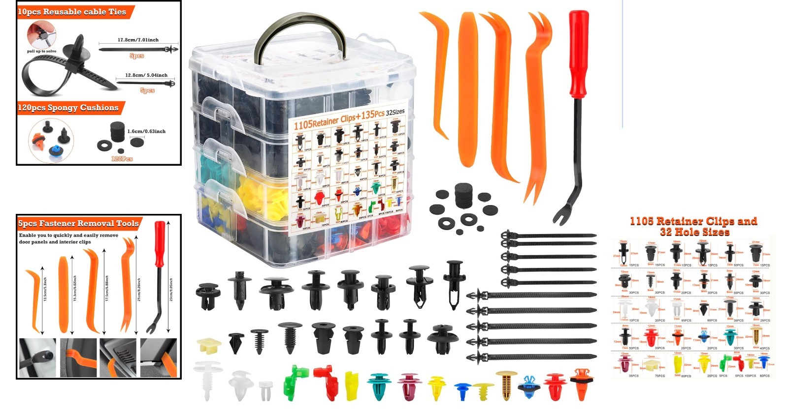Nylon Car Clips Set - 1240 Pcs Fasteners, Tool & Storage Case Included ‹ › ‹ › ‹ › ‹ › ‹ › ‹ › ‹ › ‹ › ‹ › Nylon Car Clips Set -1240 Pcs Fasteners, Tool & Storage Case Included Features: Universal Fit Kit: Includes 32 of the most commonly used sizes, ideal for replacing trim, door panel, bumper, fender, engine cover, and splash shield retainers. Fits popular models from Ford, GM, Honda, Toyota, Chrysler, and more. Quality: Made from durable, high-strength nylon that resists wear, vibration, and breakage—ensuring longevity for both daily drivers and automotive enthusiasts. Heavy-Duty Fastener Remover: Comes with a tough plastic and metal tool designed to quickly and safely remove car door panels, upholstery clips, and trim without damage, ideal for accessing tight spaces. Cost-effective Solution: Save on trips to the auto parts store! This comprehensive kit contains everything you need for DIY car repairs, making it a great gift for car lovers. Compact & Portable Storage: All clips and tools are organized in a lightweight, durable storage case, keeping your car retainer clips neatly stored and ready to go—perfect for your garage or on-the-road projects. Benefits: Ideal for a wide variety of automotive repairs. Quality materials ensure lasting performance. Saves time and money with a one-stop-shop approach. Compact design for easy transportation and organization. Why Choose Our Nylon Car Clips Set? When it comes to automotive repairs, why settle for anything less than the best? Our Nylon Car Clips Set is meticulously crafted with high-strength nylon guarantees durability and reliability, giving you peace of mind when tackling repairs. Its universal fitment and organized storage make it a true powerhouse for DIY enthusiasts. Invest in a set that saves you time and money while enhancing your vehicle's longevity. Experience the convenience of having all you need in one expertly designed kit—order your Nylon Car Clips Set today! Shipping Free & Fast Shipping - We offer free shipping to most of the USA with a normal delivery time of 3-7 days. However, due to the current situation, additional delivery time (up to 3 weeks) may be required for some items. Alternative Carriers - We may use alternative carriers (e.g. USPS, FedEx, UPS, etc.) to ensure your package arrives safely and on time. Due to the use of multiple carriers, we are unable to provide a tracking number automatically. Handling Time - Orders are processed and shipped within 1-2 business days of receiving cleared payment. Shipping Restrictions - Shipping to Alaska, Hawaii, Puerto Rico, Guam, and other US territories may incur shipping charges or delivery restrictions. Please contact us before ordering, or your order can be refunded/cancelled. State Restrictions - There may be restrictions based on your state of purchase. For example, certain items may not be shipped to California due to state regulations. Contact for Tracking Updates - If you require tracking updates or have any concerns about the delivery of your order, please feel free to contact us, and we will be happy to assist you. Return 30-Day Hassle-Free Returns - We want you to be completely satisfied with your purchase. If you are not, you can return the item within 30 days of receiving it for a full refund or exchange. Easy Return Process - To start a return, simply contact us and we will provide you with a prepaid return shipping label and detailed instructions. Restocking Fee - There are no restocking fees for returns. However, the buyer is responsible for return shipping costs if the return is not due to a seller's error. Refund Processing Time - Refunds will be processed within 5 business days of receiving the returned item in its condition. Payment We accept all major credit cards, PayPal, and Apple Pay for your convenience. Your payment information is secure and encrypted to ensure a safe and seamless transaction. Please complete your payment within 3 days of purchase to avoid any delays in shipping. Feedback Your feedback is extremely important to us. We strive to provide the best products and customer service possible. If you are satisfied with your purchase, please take a moment to leave us a positive review. If you have any concerns or issues with your order, please contact us before leaving negative feedback. We are committed to resolving any problems and ensuring your satisfaction. Contact Us If you have any questions or concerns, please feel free to out to our customer support team. You can contact us through the eBay messaging system. We are available Monday to Friday, 9:00 am to 5:00 pm EST, and we will do our best to respond to your inquiry within 24 hours. Buy it now and enjoy a pleasant shopping experience! Item Length: Car Retainer Clips and Fasteners Placement on Vehicle: Universal Finish: Car Retainer Clips and Fasteners Features: Easy Installation,Universal fit,Durable,High-strength,Wear-resistant,Vibration-resistant,Breakage-resistant,Portable storage case,Time-saving,Money-saving Material: Plastic,Nylon Type: Fasteners Color: Black Attachment Type: Push-In