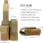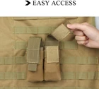 9MM Magazine Pouch Double Molle Pistol Mag Pouch Tactical Pistol Magazine Pouch Mag Holder Tool Organizer Holder Tool Holster Features: 1.【Durable Material】The tactical pistol magazine pouch made of high quality military 600D nylon material, tear-resistant, wear-resistant. The mag pouches provides optimal storage for most pistol magazines. 2.【Molle System】The molle system on the back can be hung on the equipment with molle module, such as tactical vest, belt, pack or other MOLLE compatible gear; easy attachment and removal. 3.【Hook and Loop】The pouch has a secure hook and loop fastener cover that can fit practically any pistol magazines, keep different size magazine reaches the most stable state. And a steel drain hole rivet in the bottom. 4.【Widely Used】The mag pouch can also be used to store folding knives, multi-tools, mini flashlights, and other small essentials. Specifications: 1. Material: 600D Nylon Fabric 2. Size:14cm*10cm/5.5in*4in 3. Weight:75g 4. Color: Black/ACU/CP/Khaki/Army Green Package Included: 1x Tactical Double Molle Magazine Pouch