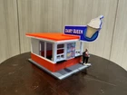 UPDATED 7/5 - added the ability to light up the Dairy Queen Sign ( Thanks to Youtube Friend Suggestion). See attached photos…(strip light & wires not included sorry). Here is a building we have all visited, this kit comes with everything shown, printed in color as displayed. I will also include a printout photocopy of the sign if you wanna use it. This building is approximately 5 x 4 1/2 x 4 1/2 H, to the top of the sign high if used with the included base. Sorry Bob is our resident helper and not included in listing. Sorry US Shipping only Contact me with any questions. Assembly video available on my youtube page @flrailroaddog
