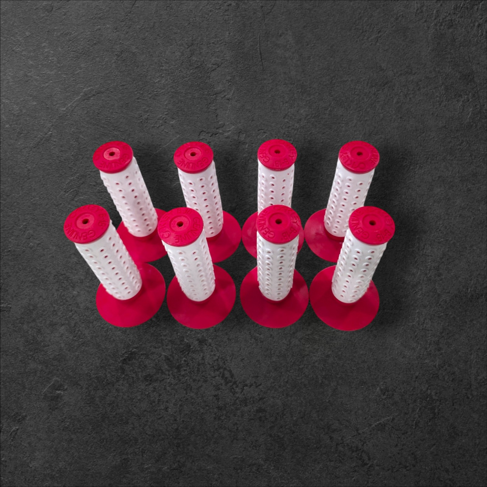All new never used Oakley B1B GRIPS WHITE AND RED 4 PAIRS 8 GRIPS IN TOTAM Elevate your ride with the Oakley B1B grips, a perfect blend of style and comfort for your BMX bike. These standard grips come in a crisp white and red color scheme, adding a fresh look to your handlebars. Crafted from durable rubber, they provide a slip-on grip installation for ease of use and a secure fit. Designed for BMX bikes, including old school and racing models, the Oakley B1B grips are compatible with a range of bike types. This set includes four pairs of grips, ensuring you have enough to refresh your bike's feel and look. Keep your hands comfortable and your style on point with these classic-shaped handlebar grips.
