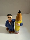 Spice up your dining table with these eye-catching OCI Fitz and Floyd Movers & Shakers Pencil Pusher Salt & Pepper Shakers. The novelty design features a man and pencil shape, adding a playful touch to any meal. Made of high-quality ceramic and crafted in the Philippines, this set includes a pepper shaker and salt shaker. Perfect for all occasions, these multicolored shakers are a great addition to any collection and a fun way to season your food. Add a touch of style to your kitchen with these unique shakers. See pictures for wear
