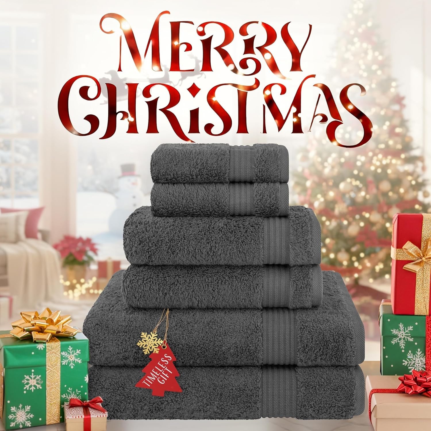 Luxury Grey 6-Piece Bath Towel Set - Soft Turkish Cotton for Ultimate Comfort